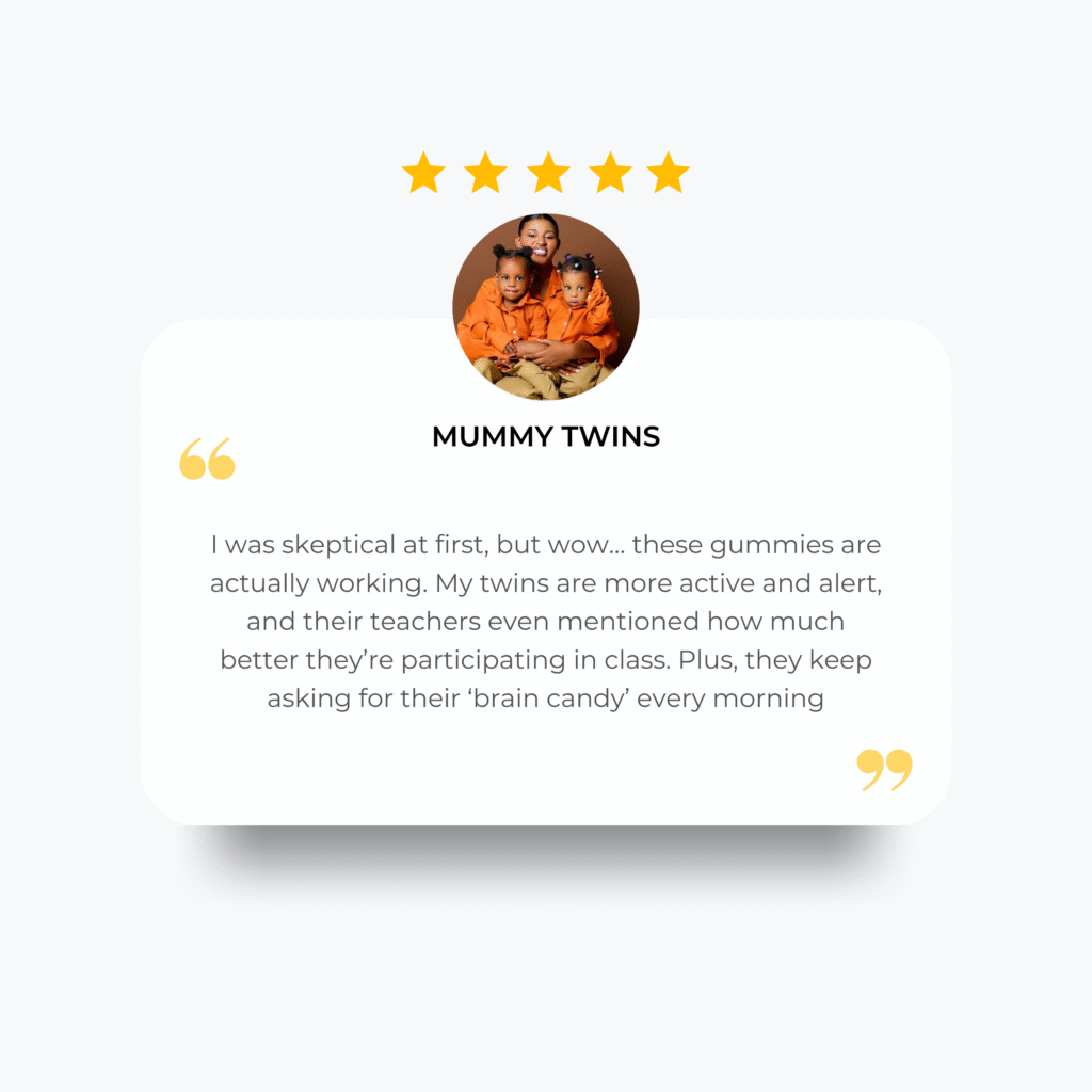 Two tasty gummy a day is all it takes to support your child’s brain, body, and confidence — without the fuss of pills or the battles at mealtime.
