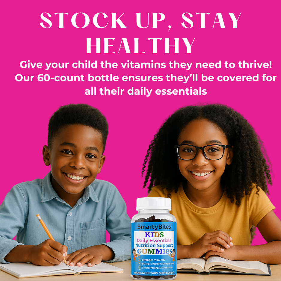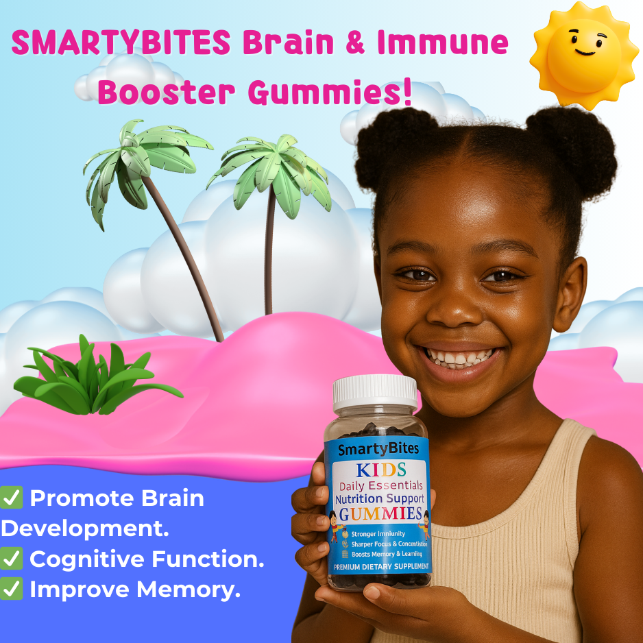 That’s why we created SMARTYBITES Brain & Immune Booster Gummies! — a breakthrough formula designed to fill every nutritional gap and give your child the daily support they need to shine.